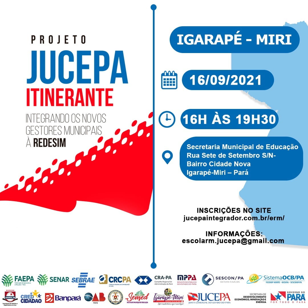 O projeto Jucepa Itinerante chega a sua sexta edição, de 15 a 27 de setembro, nos municípios de Cametá, Igarapé-Miri e Barcarena.